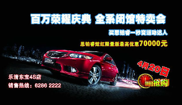 乐清东宝百万荣耀庆典 4月20日全系闭馆特卖会