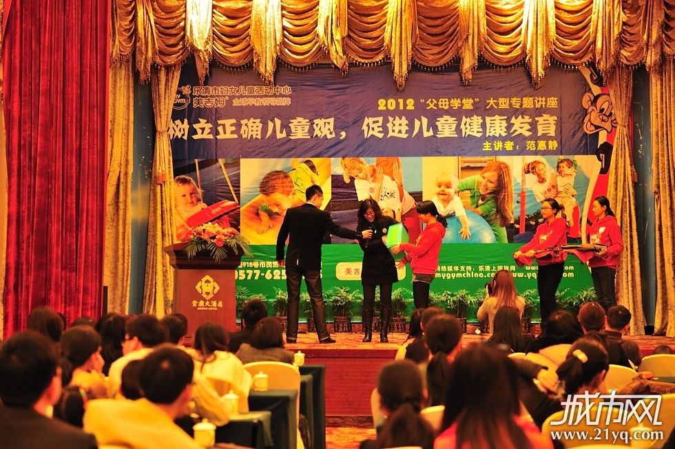 乐清市妇女儿童活动中心-美吉姆国际儿童教育邀全国知名儿童教育专家范惠静教授在金鼎大酒店五楼举办2012"325父母学堂"大型专题讲座活动. 范教授精彩生动的给在座150多名家长如何教育培养幼儿生活自理能力及幼儿体育活动重要性作了详细的讲解。