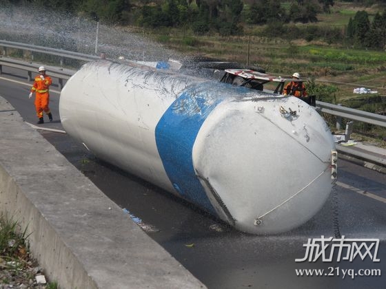 4月1日早上7时许,104国道大荆白箬岙段发生一起液化气槽罐车侧翻的交通事故,公安、交通、消防、环境监测等部门正在现场处置。