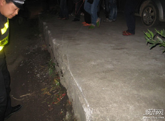 “我刚刚从桂花树边走过来,听到“砰”的一声,回过头一看,一辆轿车从半米多高的道坦上飞下来,吓得我一身冷汗。”龙西人方孔满说。