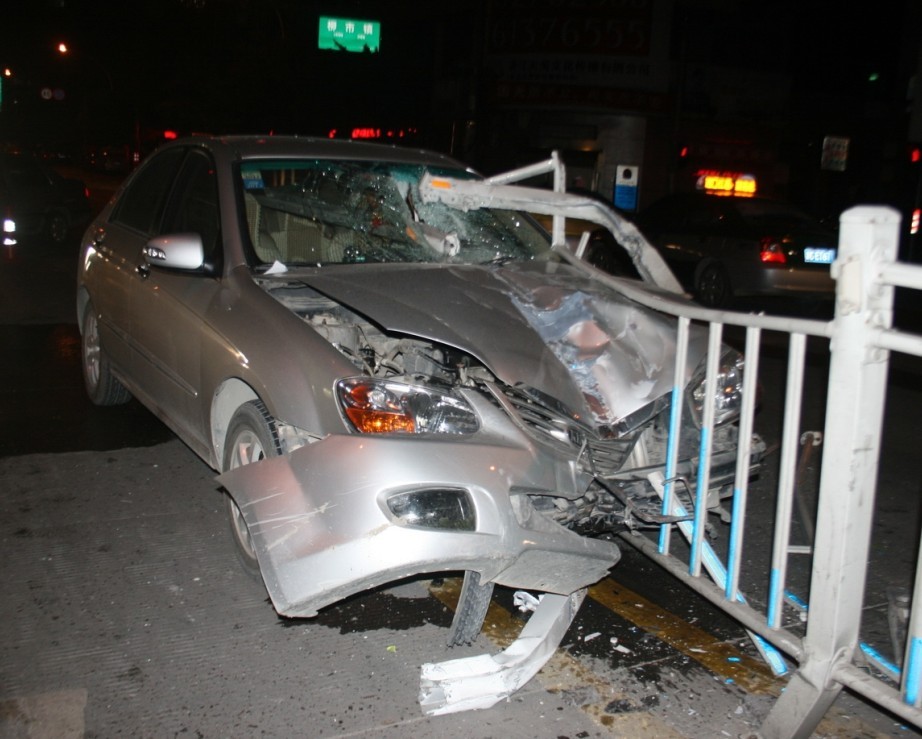 近日,一辆起亚轿车途经柳市镇大桥路与东风路交叉口的红绿灯时,轿车在慢停下来后,突然加速撞上中间隔离护栏,致使坚硬的护栏从车前挡风玻璃一直穿透车尾,庆幸的是驾驶员只是受了点皮外伤,并无大碍。