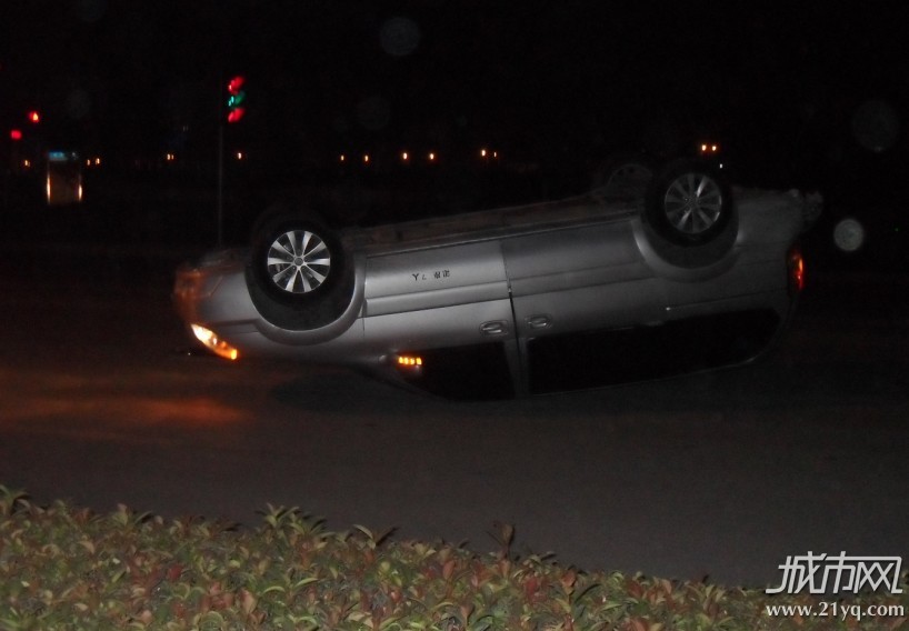 昨晚10许,在乐成三环路,一辆出租车与别克中型商务车相撞 ,中型商务车整个被撞翻过来 ,据了解,是这两辆车中的其中一辆车闯红灯导致这场车祸的,幸好没有人受伤。希
