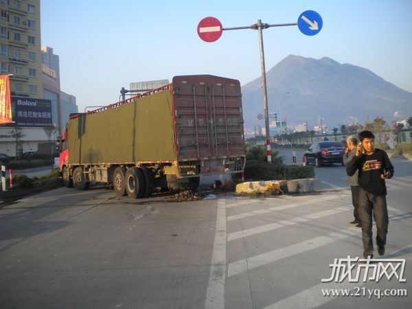 行人随意横穿马路 大货车紧急避让出事故